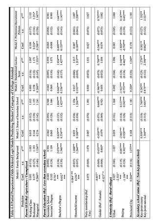 In addition, the results from the quantitative models indicated that coming from a college-educated family provides an advantage in obtaining special preferential recruitment placement; this finding is significant for both sexes.